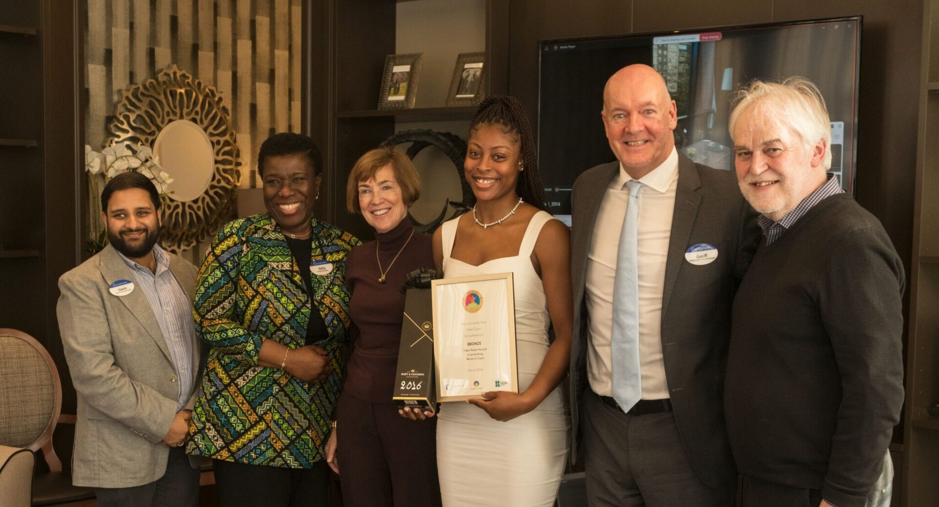 The awards are an extension of a collaborative and successful pilot project between the University of Roehampton and Cinnamon Care Collection called Take Note, which launched in 2024 focusing on the benefits of music for older adults in care settings, particularly those living with dementia. Professor Adam Ockelford and Senior Researcher Dr Fi Costa from the University of Roehampton led the study, created the awards, and presented them to the recipients at a wonderful awards ceremony at Eden Court care home in Battersea.